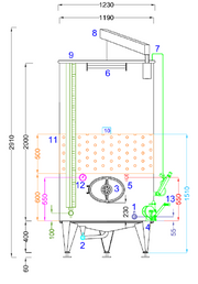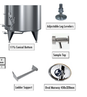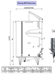 Actual tank capacity is 2,179 liters. Ideal for fermenting or aging wine.
