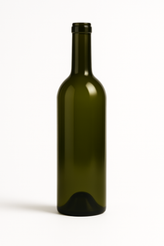 Premium 750ml Bordeaux wine bottle with full punt in elegant antique green glass, featuring a traditional cork finish. The tall, classic Bordeaux shape with full shoulder enhances the presentation of fine wines and provides professional packaging for your finished products.