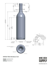 750ml Bordeaux Wine Bottle, W65, Flint, Cork (case of 12)