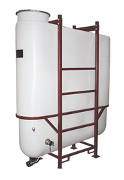 The Flextank Cell is designed to provide excellent space utilization when set up in rows and stacked 2 high. A 2 high stack uses 0.85 sq. ft. per barrel compared with 1.25 sq.ft. per barrel when stacked 6 high on barrel racks. They include fork truck pockets. For safety reasons it is advisable to put the upper tank in place empty and then fill it. Reverse the procedure when draining.