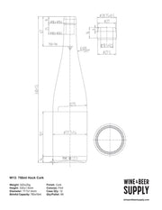750ml Hock Wine Bottle, W13, Cobalt Blue, Cork (Case of 12)